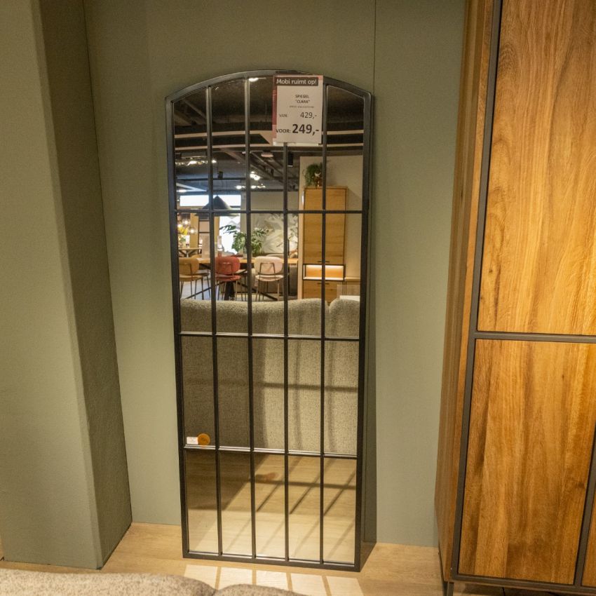 Spiegel Clara van Coco Maison is een prachtig ontwerp van glas en metaal in een industrieel zwart. De spiegel kan worden opgehangen, maar je kan Clara ook op de grond tegen de muur zetten! Clara meet 65x170cm en is een ware lust voor het oog.