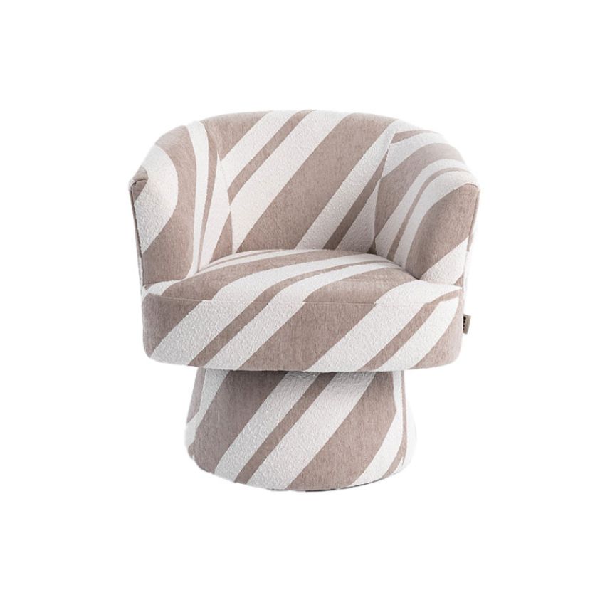 Geef je interieur een eigentijdse uitstraling met de Nora fauteuil van COCOmaison. Het moderne ontwerp is bekleed met een luxe stof in beige- en taupetinten, wat zorgt voor een warme en uitnodigende look.