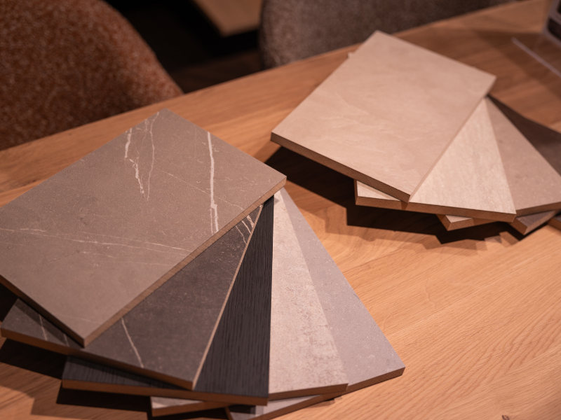 Op ons grote touchscreen zie je direct hoe jouw keuzes samenkomen in een realistisch 3D-model. Daarnaast hebben wij ook fysieke stalen en modellen in de showroom staan.