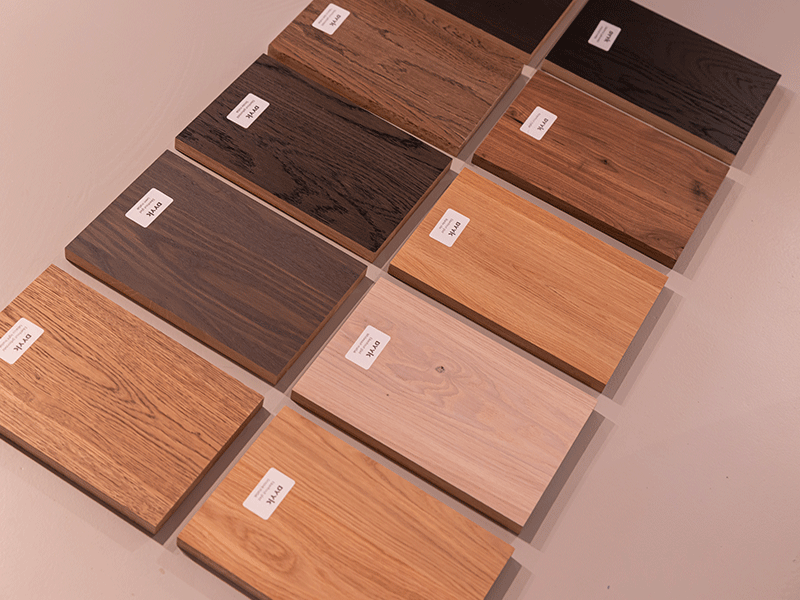 Kies je voor eikenhout? dan kan je kiezen tussen verschillende afwerkingen. Geborsteld of ongeborsteld en nieuw eiken of verfijnd eiken.