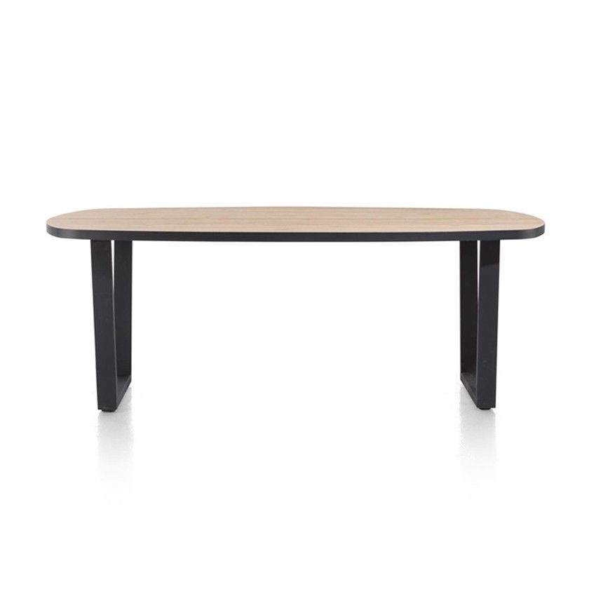 Deze eigentijdse ovale eetkamertafel uit de Avalox collectie is 210 x 110 cm. Opvallend aan deze tafel is het ovale tafelblad. Het blad is in twee kleuren leverbaar: oak natural vintage en driftwood. Opvallend zijn de zwart metalen tafelpoten, die deze eetkamertafel een stoer uiterlijk geven. Er zijn drie opties voor de tafelpoot, een centrale poot met modern design, vier losse poten, of twee stoere V-poten.