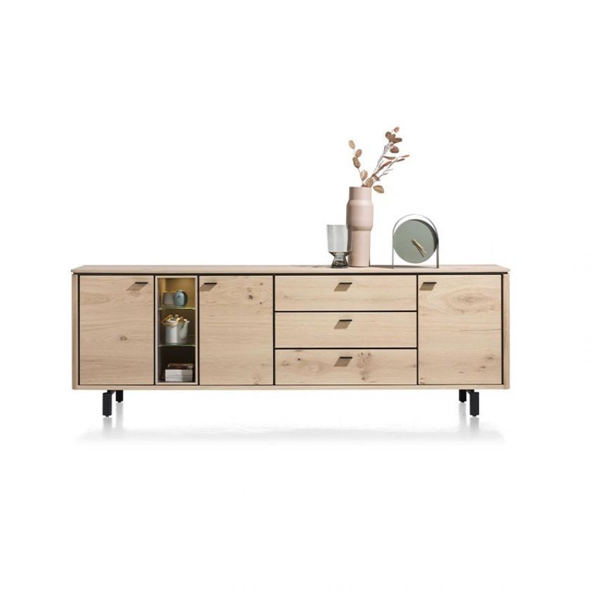 Dressoir Livada is een eigentijds ontwerp uit de collectie van Henders & Hazel. Dit opbergmeubel is minimalistisch vormgegeven en past goed in een Scandinavische woonstijl. Het dressoir is voorzien van drie deuren, drie laden en drie open vakken. Deze open vakken zijn voorzien van LED verlichting om uw accessoires in de spot te zetten.