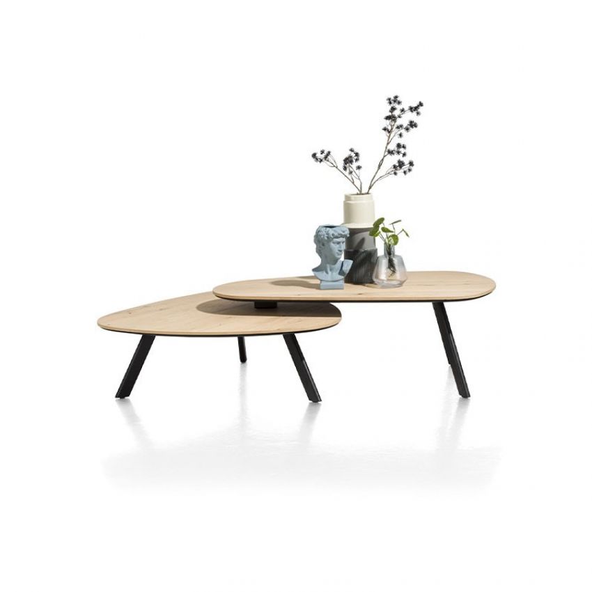 Salontafelset Livada is onderdeel van een serie eigentijdse meubels uit de collectie van Henders & Hazel. Deze set bestaat uit twee tafeltjes met driehoekige bladen in verschillende afmetingen. Met deze set creëer je een speelse compositie in jouw woonkamer. Livada is vervaardigd van wild eiken fineer wat in diverse kleuren leverbaar is.
