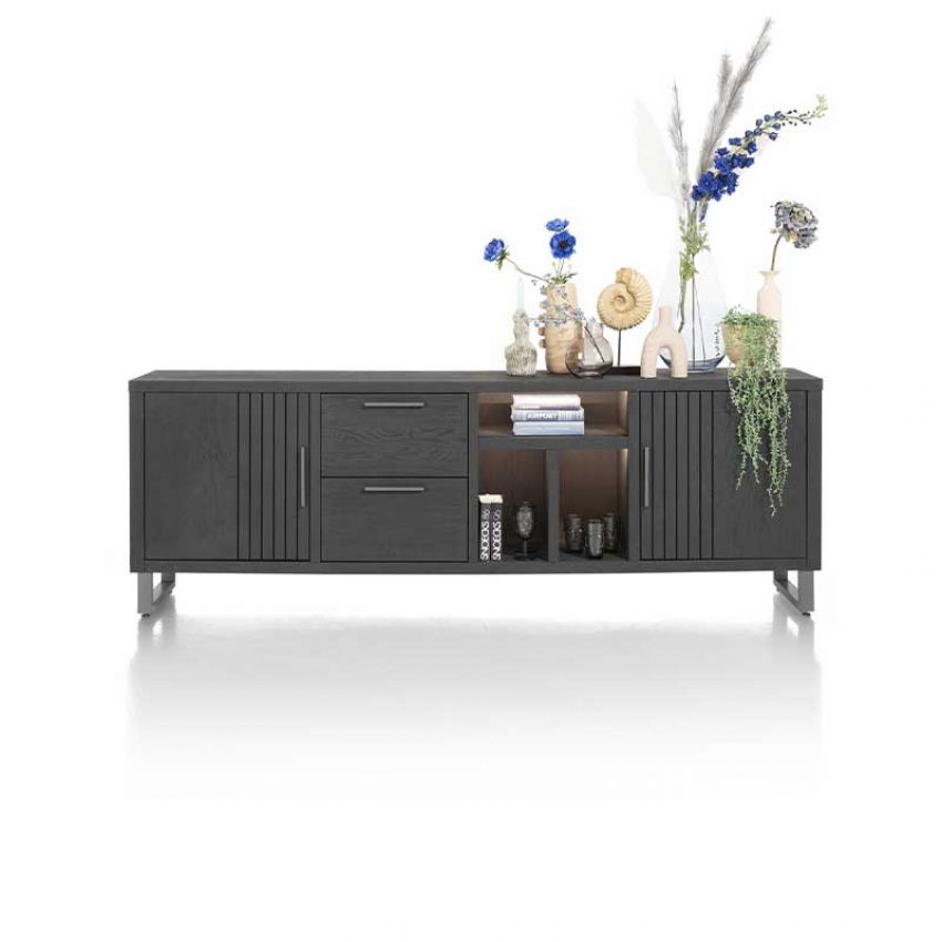 Het Pavie dressoir van Henders en Hazel is onderdeel van de Pavie meubelserie. Deze prachtige collectie is beschikbaar in twee eiken kleuren: castle black en naturel en past perfect bij de Japandi stijl - een fusie tussen Scandinavisch en Japans design. In deze stijl zie je vaak lichte kleuren zoals beige en taupe, maar ook zwart wordt veel gebruikt als accentkleur, bijvoorbeeld in combinatie met goud. Beide ontwerpstijlen waarderen de natuur, vakmanschap en functionaliteit, evenals neutrale kleuren, strakke lijnen en nette ruimtes. De Pavie meubelserie belichaamt deze kenmerken met haar mooie, strakke lijnen en de ‘stroken’ die in elk meubelstuk terugkomen, zelfs in de unieke onderstel van de eettafel. Voorbeelden van de verschillende modellen zijn te vinden op onze website, maar de collectie wordt ook sfeervol gepresenteerd in onze showroom in Alkmaar.