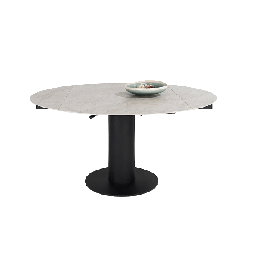 De Avellino uitschuiftafel combineert een verfijnd ontwerp met praktisch gebruiksgemak. Het ronde keramieken tafelblad en het slimme uitschuifsysteem maken de tafel geschikt voor zowel dagelijks gebruik als momenten waarop extra zitplaatsen nodig zijn.