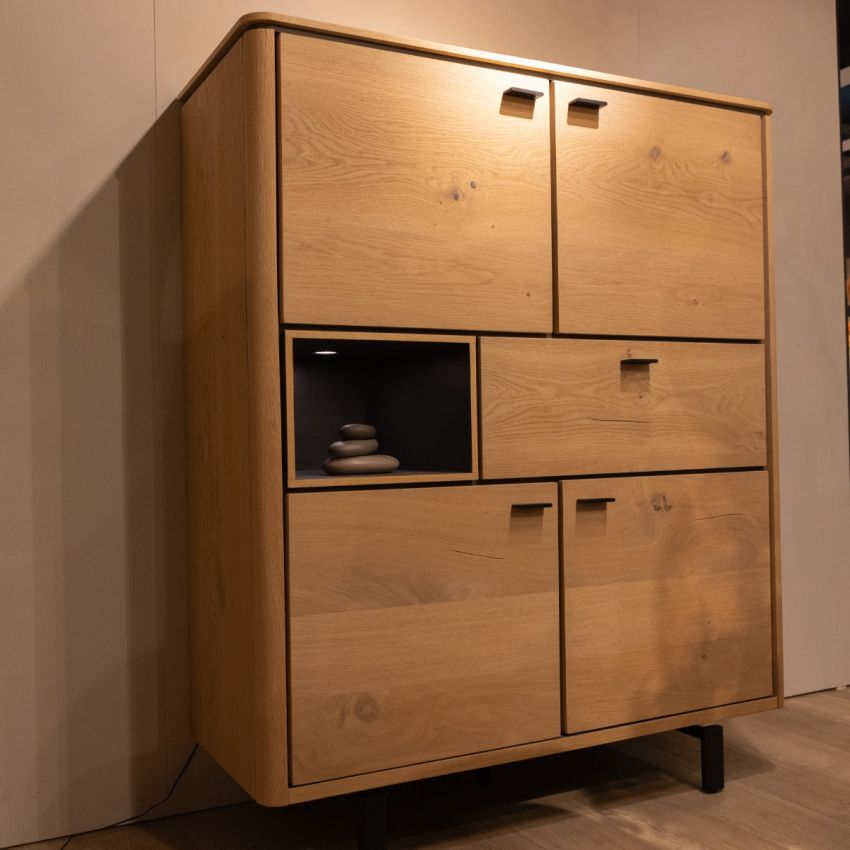 Highboard Livada is een eigentijds ontwerp uit de collectie van Henders & Hazel. Dit opbergmeubel is minimalistisch vormgegeven en past goed in een Scandinavische woonstijl. Het highboard is voorzien van vier soft-closing deuren, een lade en een open vak. Dit open vak is voorzien van LED verlichting om uw accessoires in de spot te zetten.
