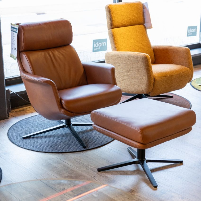 Fauteuil & hocker Vera is uitgevoerd in rijk Caldo 1300 leder en rust op een strak zwart onderstel. De Bold-uitvoering met low back en 360° systeem biedt vlotte draaibaarheid, terwijl de zithoogte van 46 cm en zitdiepte van 53 cm ergonomisch comfort garanderen. De bijpassende hocker voegt extra ontspanning toe. Dankzij hoogwaardige materialen wordt deze loungecombinatie een stijlvolle eyecatcher in elk interieur.