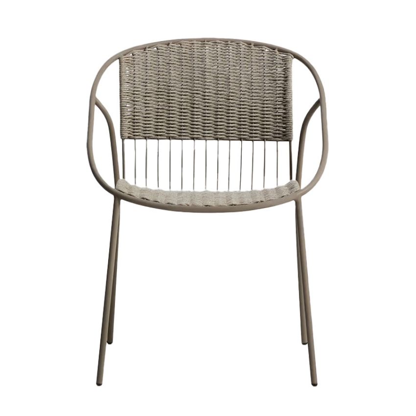De Atrani outdoor stoel van Kave Home is een elegant en licht ontwerp met een verfijnde uitstraling. De handgevlochten zitting van UV-bestendig touw biedt comfort en duurzaamheid, geschikt voor zowel binnen- als buitengebruik.