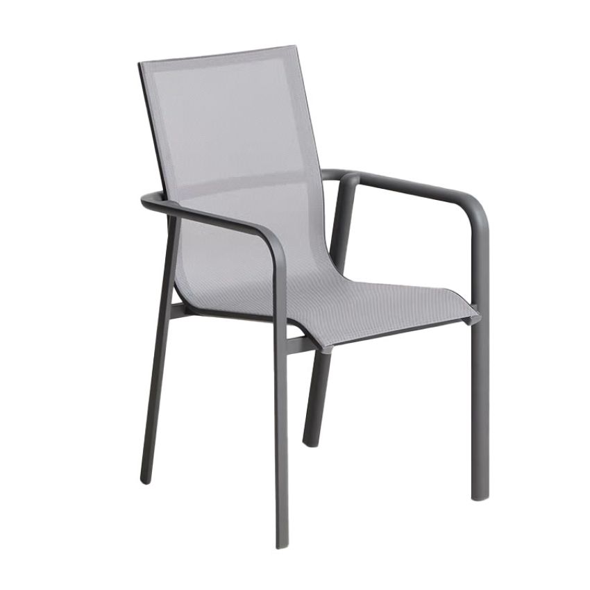 Zitting en rugleuning zijn uitgevoerd in textileen: een sterke, ademende synthetische stof die comfortabel zit en geschikt is voor intensief en langdurig buitengebruik.