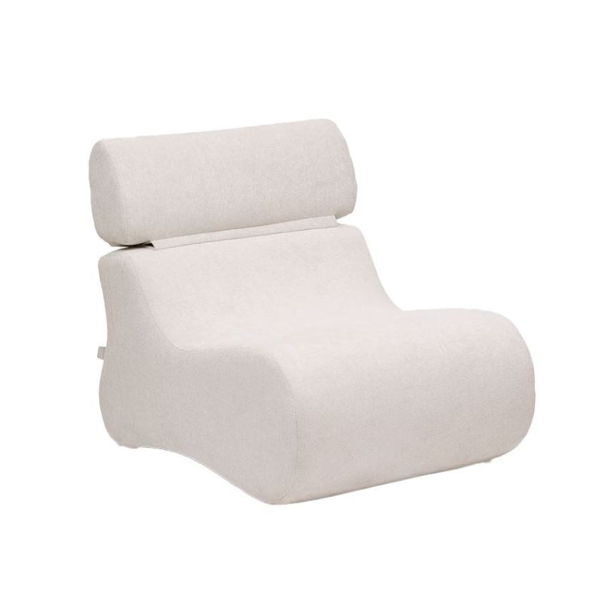 De Kave Home Club fauteuil in de kleur parelmoer combineert een origineel, organisch ontwerp met optimaal comfort. De fauteuil heeft een opklapbare hoofdsteun en een middelzachte zit dankzij de vulling van schuim in de zitting, rugleuning en hoofdsteun.