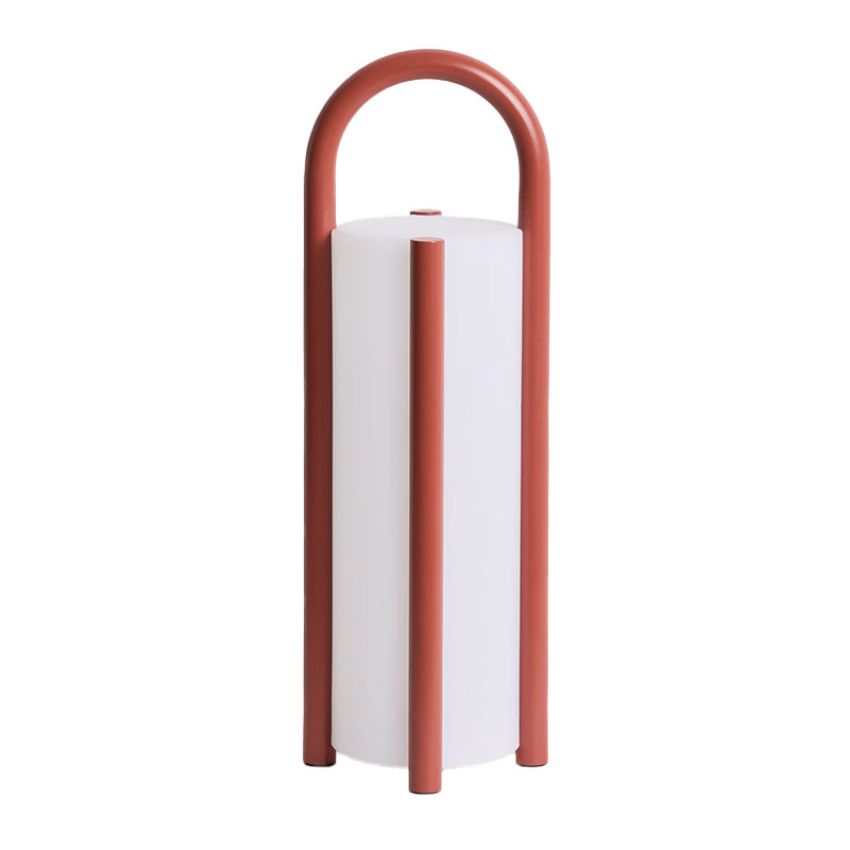 De Leros draagbare buitenlamp van Kave Home combineert een stalen structuur met een polyethyleen diffuser, ontworpen voor een functionele en sfeervolle verlichting in buitenruimtes.
