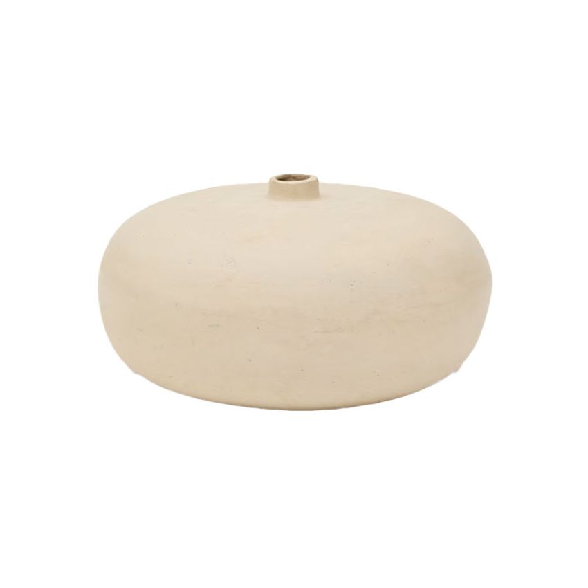 De Kave Home Nivala vaas van papier-maché combineert eenvoud en elegantie met een tijdloos ontwerp. Dankzij de ronde vorm en gladde afwerking is deze vaas een subtiel maar stijlvol accent in elk interieur. Het compacte en organische ontwerp maakt Nivala veelzijdig; ideaal om bloemen of droogbloemen in te plaatsen, of om op zichzelf een warme, natuurlijke sfeer te creëren in elke hoek van je huis.