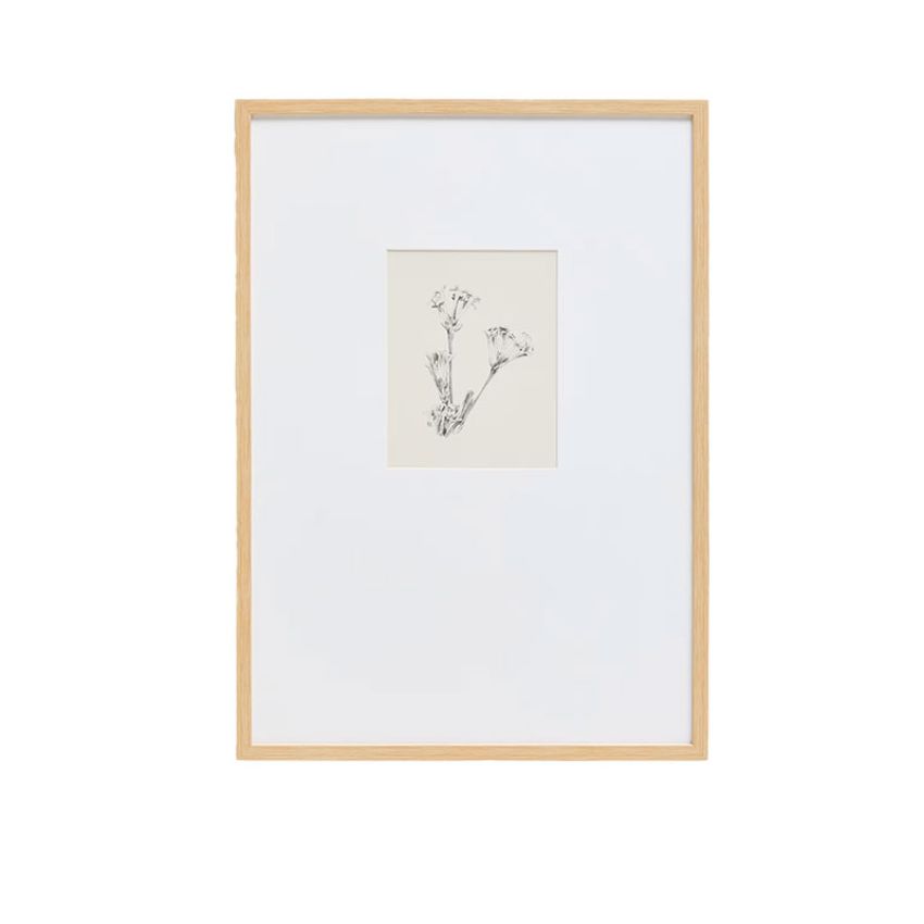 Schilderij Lirena Botanical van Kave Home is een verfijnd kunstwerk met een gedrukte botanische illustratie, uitgevoerd in potloodstijl. Het patroon doet denken aan traditionele graveertechnieken en verwijst naar klassieke botanische tekeningen. De fijne lijnen en gedetailleerde streken geven het schilderij een elegante en karaktervolle uitstraling die rust en verfijning brengt in de ruimte.