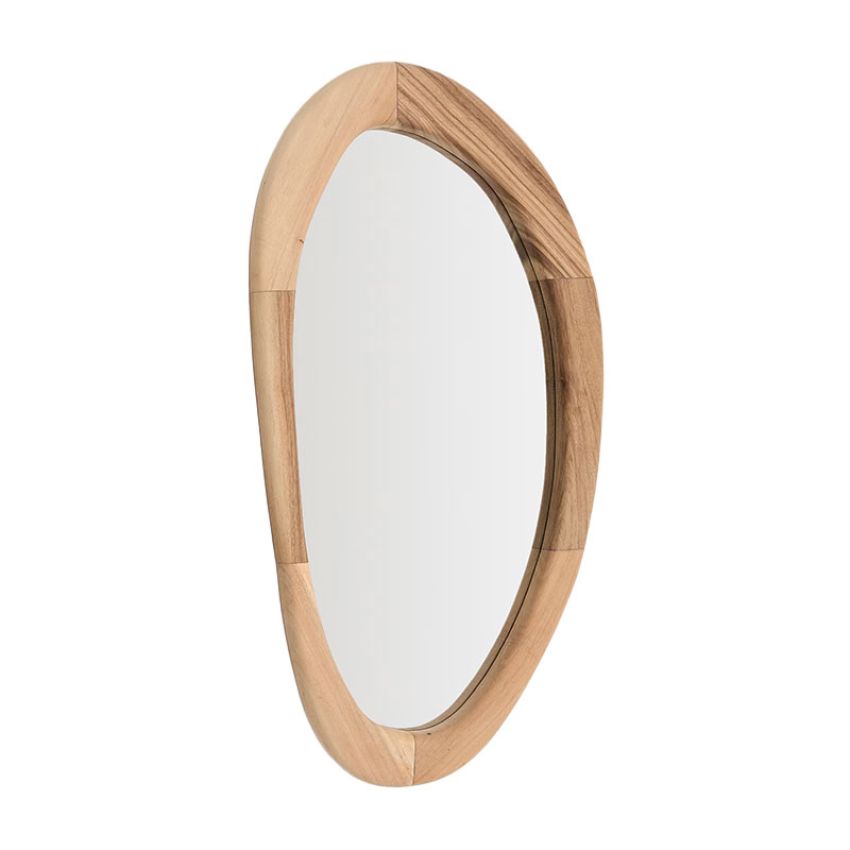 De Selem spiegel van Kave Home is meer dan alleen een functioneel object. Het ontwerp, uitgevoerd in mungur hout, brengt warmte en karakter in elke ruimte.