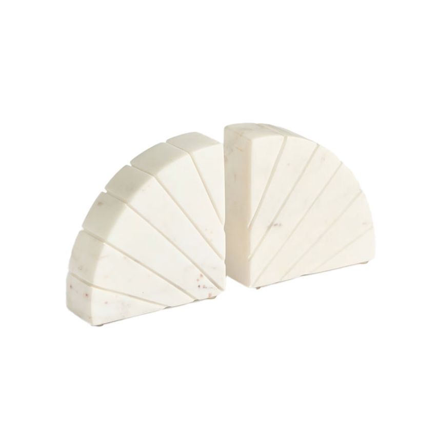 De Serela boekensteun van Kave Home is gemaakt van marmer en valt op door zijn ronde vormen en hoeken. Elke steun is uniek, met eigen kleurschakeringen en aders die de authenticiteit van de steen benadrukken.