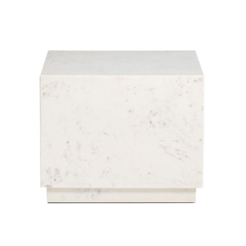De Sorein bijzettafel is opgebouwd uit massieve marmeren platen van 15 mm dik, die samen een strak geometrisch geheel vormen. Het kubistische ontwerp met heldere lijnen benadrukt het minimalistische karakter, terwijl de holle binnenzijde zorgt voor een praktisch en lichter geheel. Hierdoor is de tafel eenvoudig te verplaatsen, zonder in te leveren op de robuuste uitstraling die marmer zo kenmerkt.