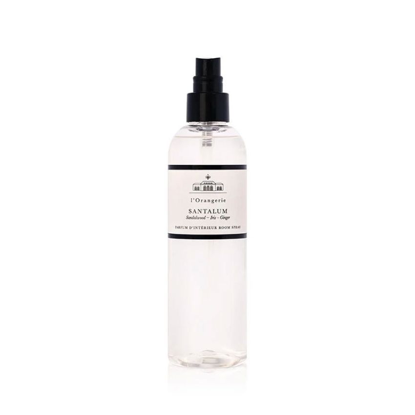 Dit is de roomspray Santalum van het merk l’Orangerie, een warme, verfijnde geur die uw interieur omhult met een gevoel van rust en elegantie.