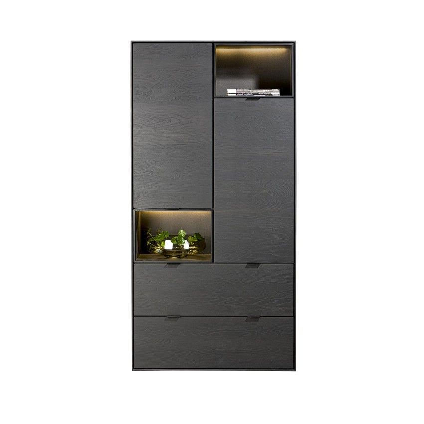 Met de Elements serie van Xooon haal je de interieurstylist in je naar boven! Je stelt namelijk met alle losse Elements items jouw ideale kast helemaal naar eigen wens samen. Gebruik deze onyx kleur bergkast van 90 cm breed voorzien van twee deuren, twee laden en twee met led verlichte niches als basis en combineer hem met andere Elements items in bijvoorbeeld naturel eiken fineer, lak groen, of lak zwart. Deze bergkast is ook leverbaar in naturel eikenhout.