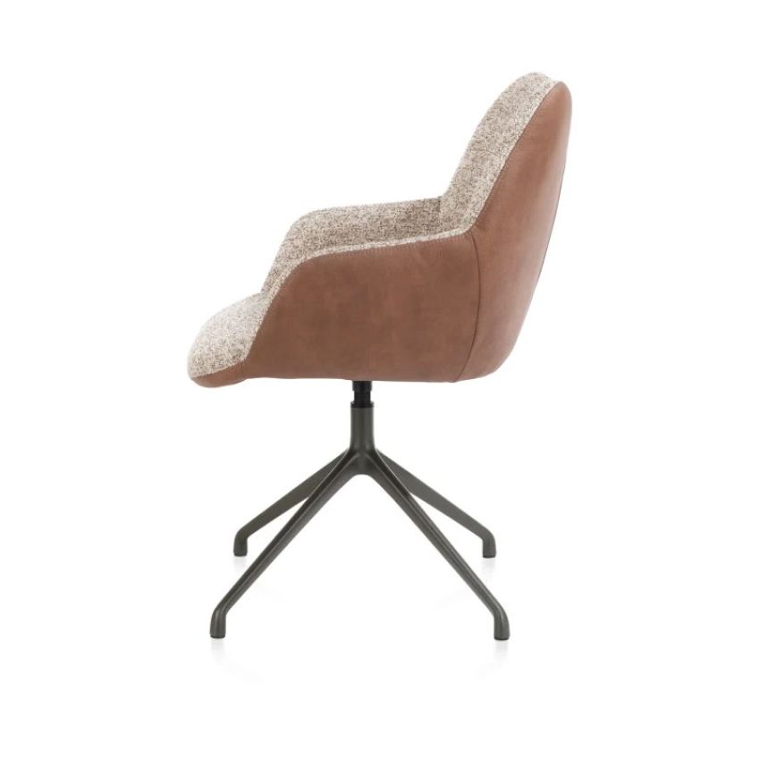 Armstoel Xooon Mats is een moderne en comfortabele toevoeging aan de eethoek. De stoel is uitgevoerd in een stijlvolle combinatie van stof Pala in de kleur cognac en stof Luton in koper. Dankzij de eventuele wielen is Mats praktisch in gebruik, terwijl de elegante, ronde vormgeving zorgt voor een verfijnde uitstraling. Het aluminium frame in de kleur rough off black onderstreept het moderne karakter. De comfortabele zitting en prettige armleuningen bieden optimaal zitcomfort en maken het eenvoudig de stoel onder de tafel te schuiven. Mats is verkrijgbaar in diverse uitvoeringen wat betreft kleur, bekleding en onderstel.