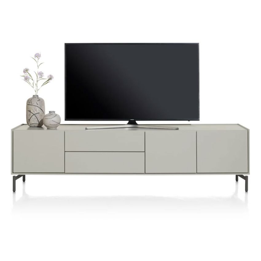 Het Xooon Noon lowboard combineert een strakke, moderne vormgeving met een tijdloze uitstraling. Met een breedte van 210 cm is het meubel uitgevoerd in gelakt MDF in de kleur silk grey. Optioneel kan worden gekozen voor een top van Primo Laminato (HPL) met een verfijnde marmerlook. Het lowboard is voorzien van drie greeploze deuren en twee laden, allemaal uitgerust met een softclose systeem. Het geheel rust op slanke metalen pootjes, standaard uitgevoerd in grafiet of optioneel in silk grey. Dankzij het uitgebalanceerde ontwerp past Noon moeiteloos in uiteenlopende woonruimtes. Het lowboard is tevens verkrijgbaar in een kleinere afmeting en maakt deel uit van een complete serie met bijpassend dressoir, dressette en bergkast.