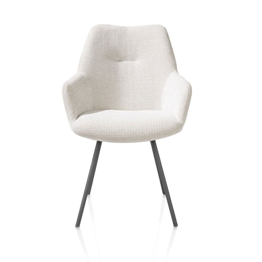 Geef je interieur een stijlvolle update met armstoel Xooon Odin in de kleur ivoor, of kies uit één van de andere beschikbare uitvoeringen. De stoel is bekleed met stof Vada en staat op een rank metalen frame in grafietkleur, wat zorgt voor een moderne en verfijnde uitstraling.