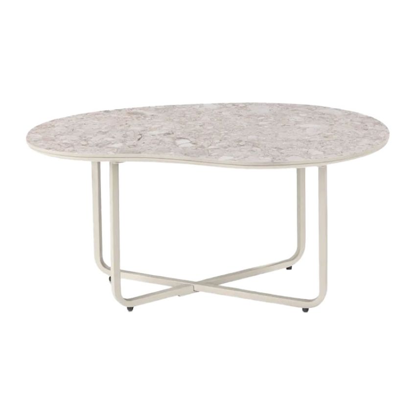 De Rota salontafel van Xooon heeft een organisch gevormd blad met een stijlvol keramisch terrazzo motief. De zachte, ronde lijnen geven de tafel een speels en natuurlijk karakter.