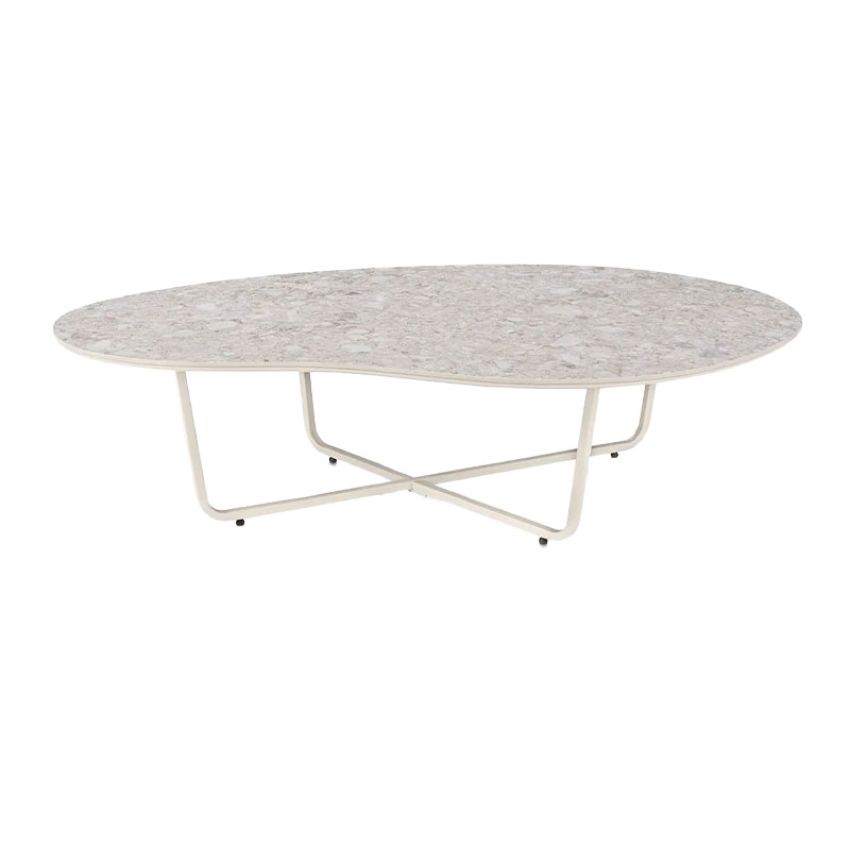 De Rota salontafel van Xooon is uitgevoerd met een keramisch blad met terrazzo motief en een organisch gevormd design. De zachte lijnen geven de tafel een natuurlijke en moderne uitstraling.