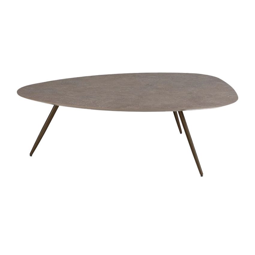 De tafel staat op drie metalen pootjes in steelbrown, wat zorgt voor een luchtige en moderne uitstraling. Dankzij het speelse ontwerp laat de salontafel zich eenvoudig combineren in diverse woonstijlen.