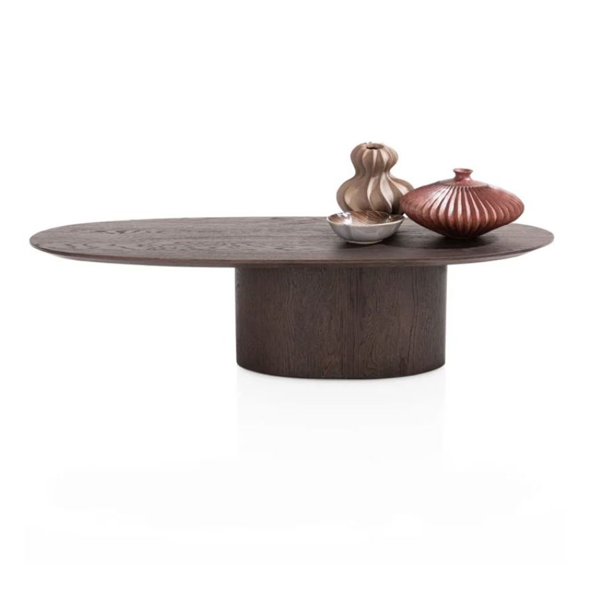 Salontafel Xooon Trenton is een stijlvolle blikvanger dankzij zijn organische vormgeving. De tafel is vervaardigd van eikenfineer en uitgevoerd in de kleur clay. Het elegant vormgegeven blad met een afmeting van 120 × 50 cm rust op een centrale, conische poot die aan de binnenzijde is verzwaard voor optimale stabiliteit. Voor een samenhangend interieur is de Trenton-serie tevens verkrijgbaar met bijpassende kasten en eetkamertafels.